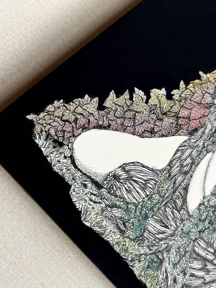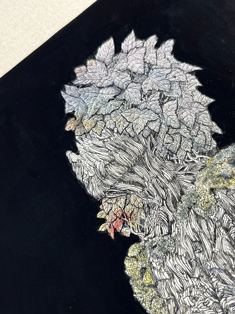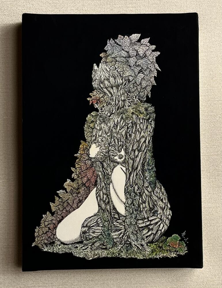 使用画材:インク・ケント紙・水彩絵具・紅茶・木製パネル