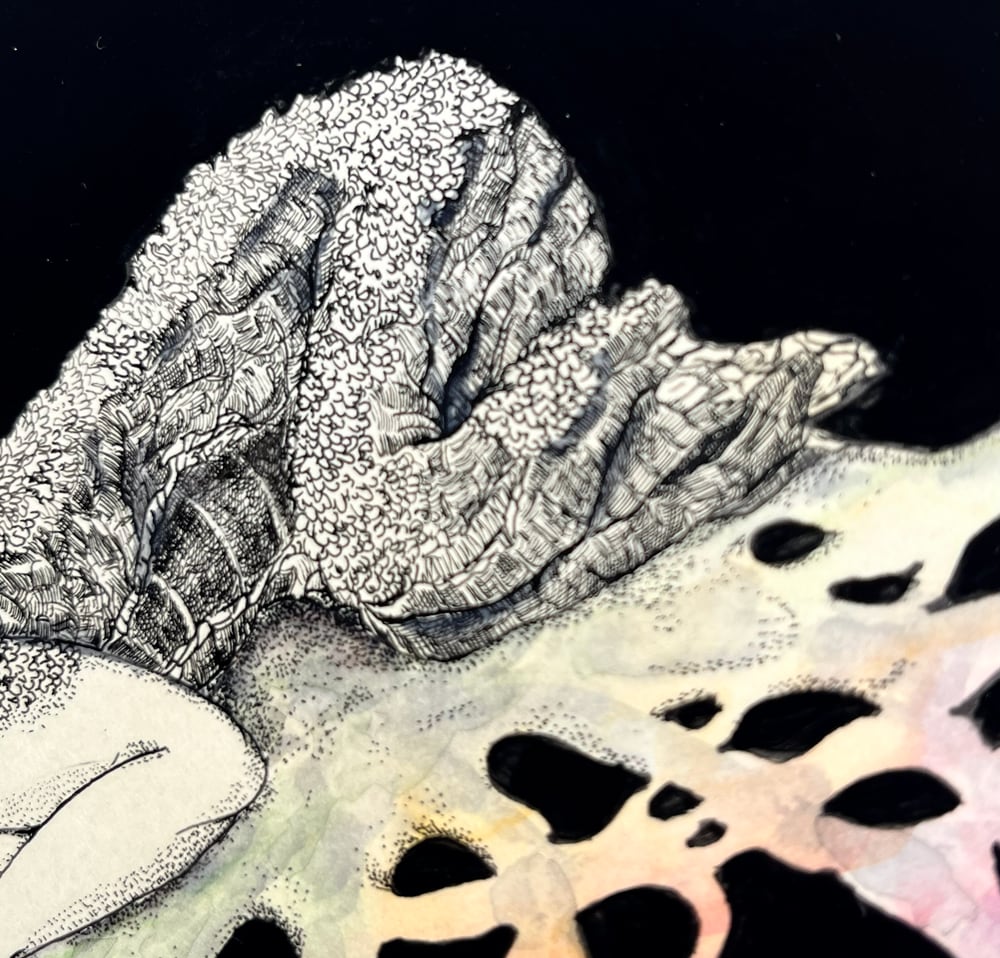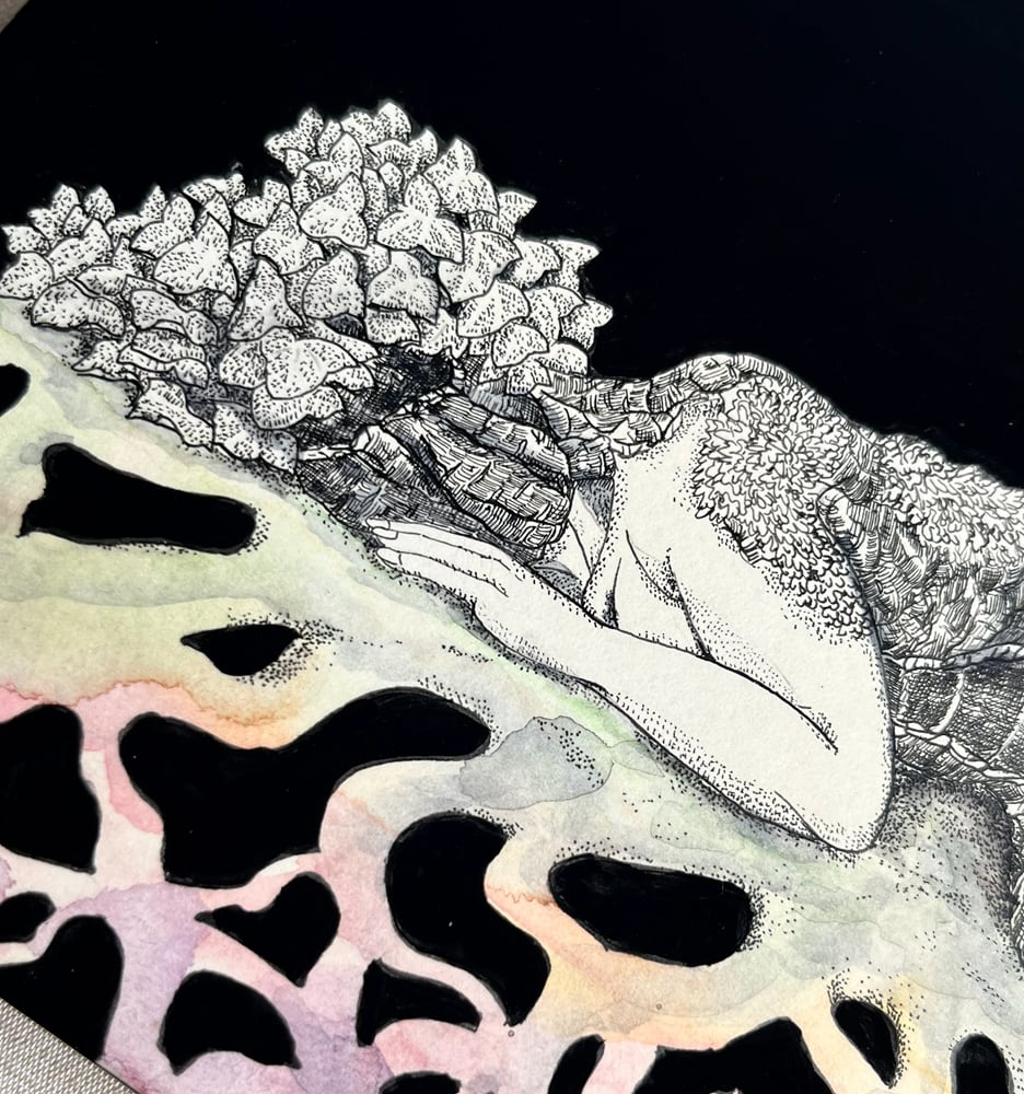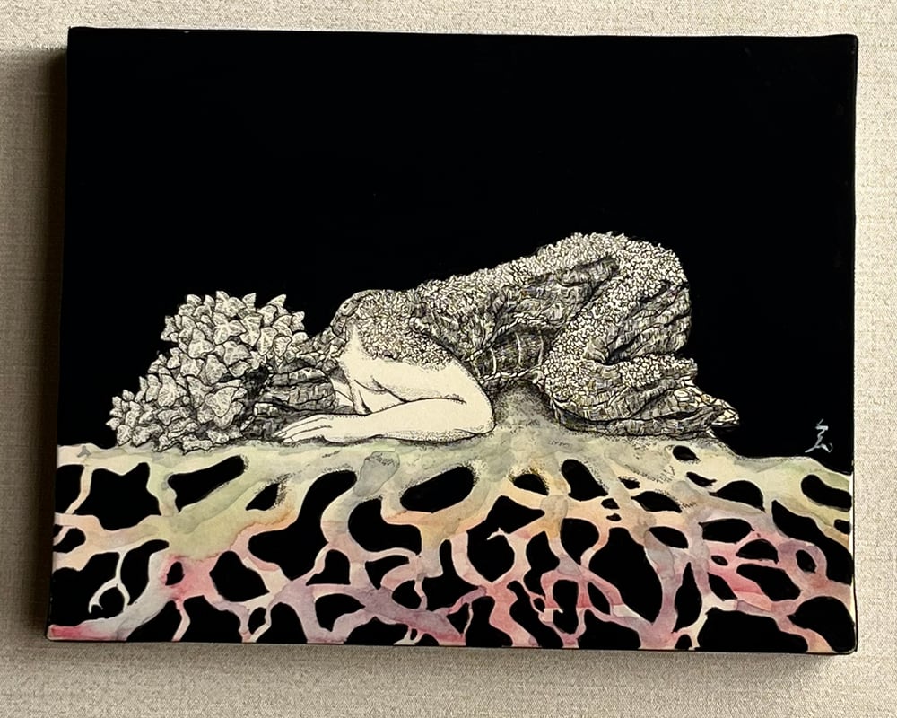 使用画材:インク・ケント紙・水彩絵具・紅茶・木製パネル