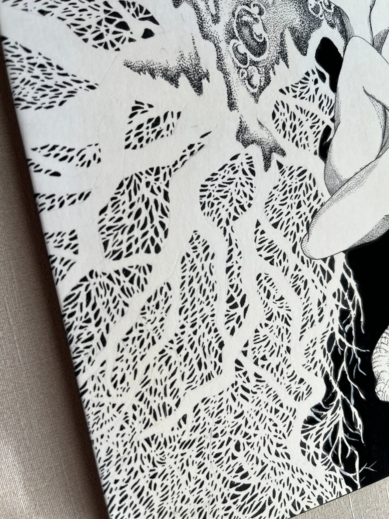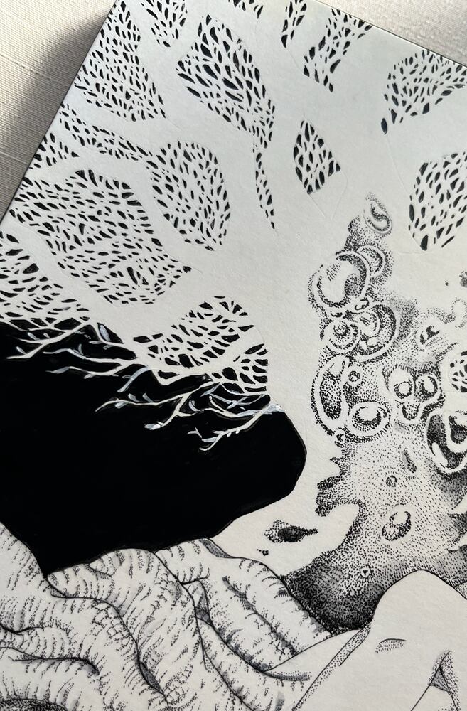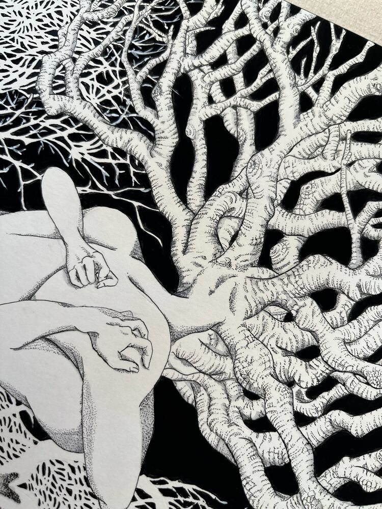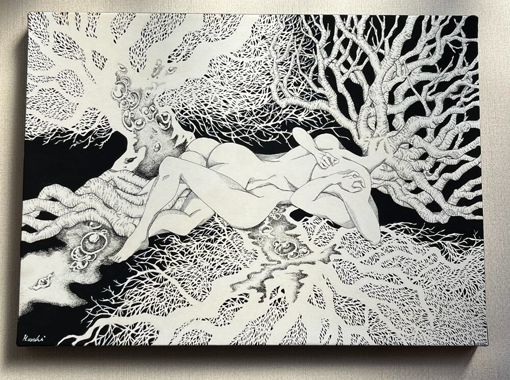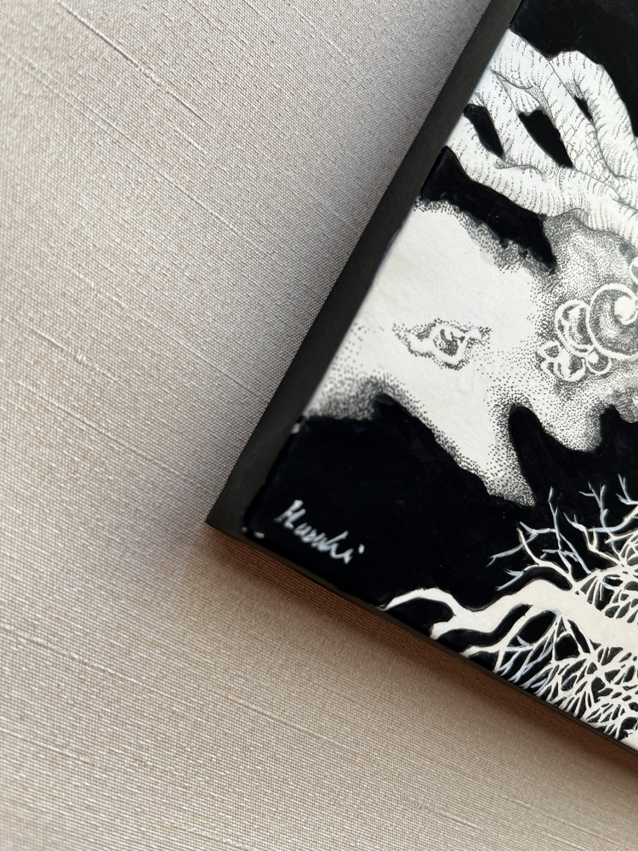 使用画材:インク・ケント紙・紅茶・木製パネル